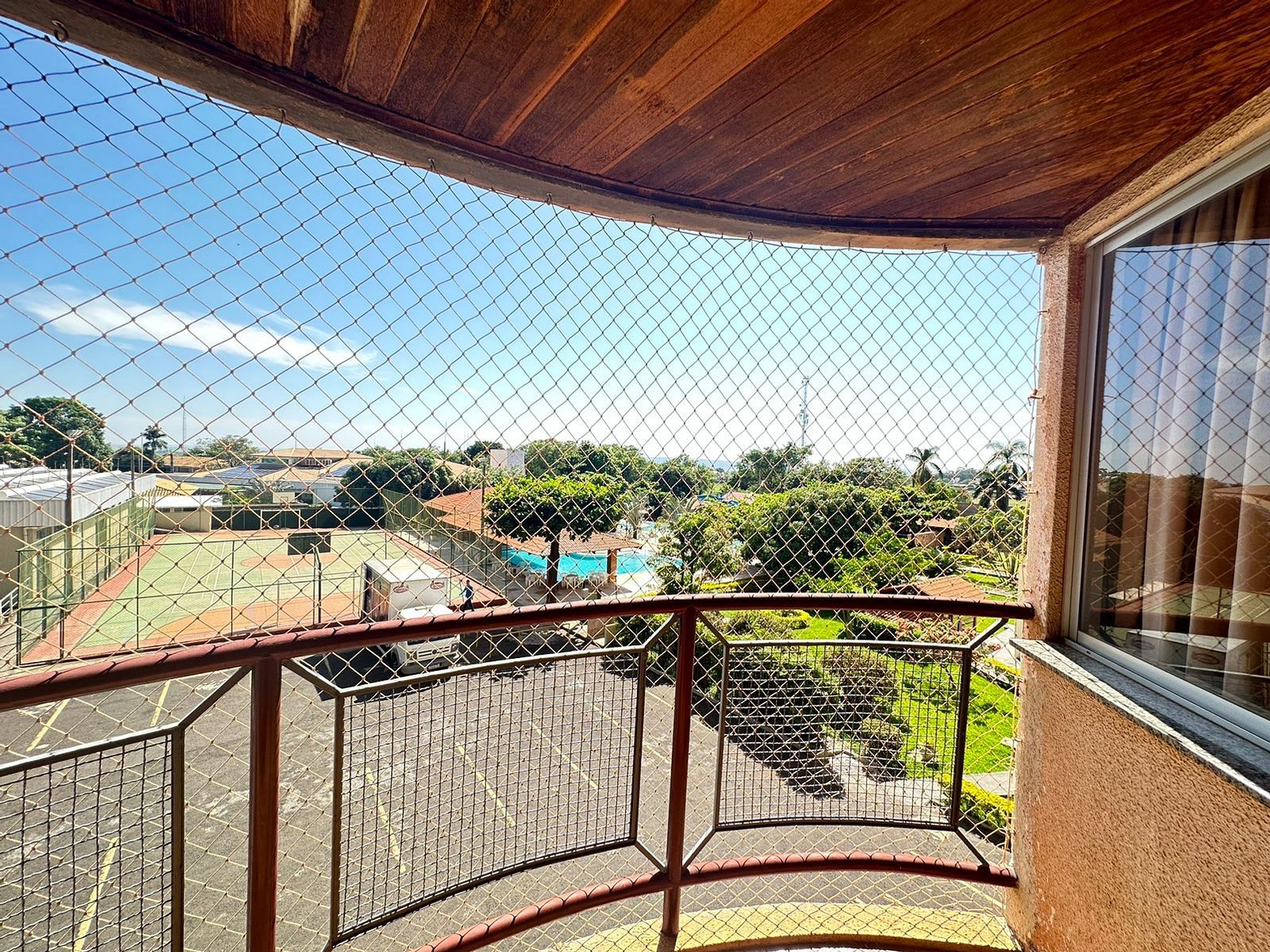 os 217 apartamentos, são equipados com TV, frigobar ou geladeira, telefone, ar condicionado, terraço com vista excepcional da cidade de Caldas Novas.