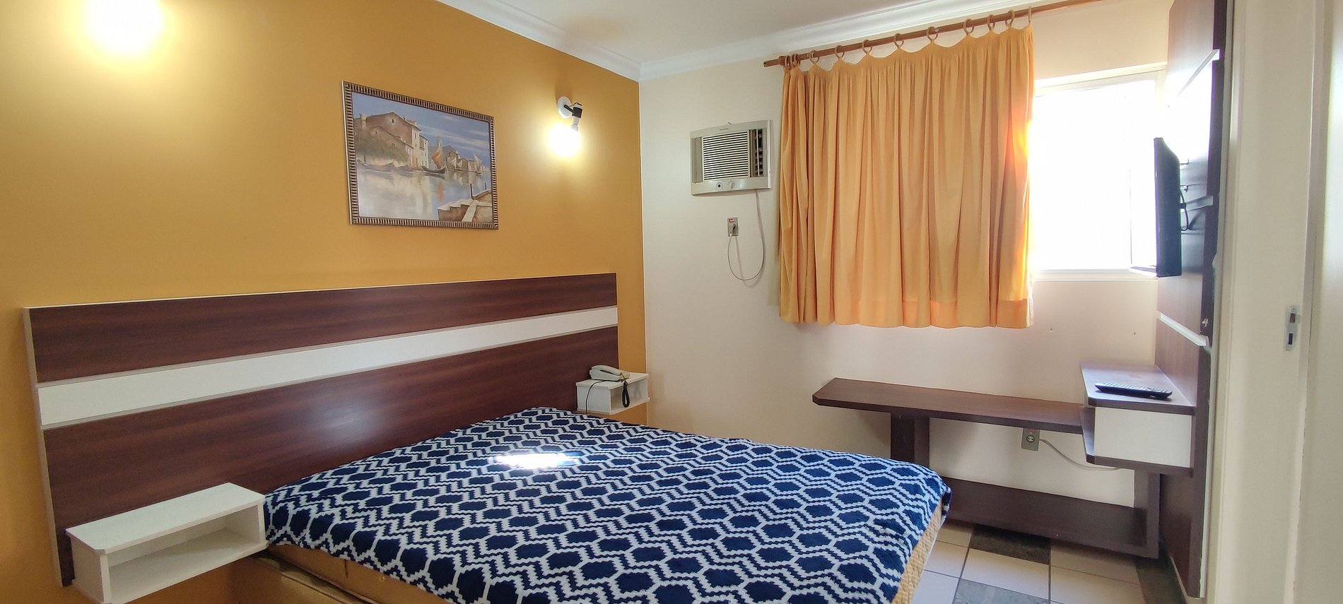 Um aconchegante apartamento contendo 01 suite de casal com TV e ar condicionado, 01 colchão de solteiro.