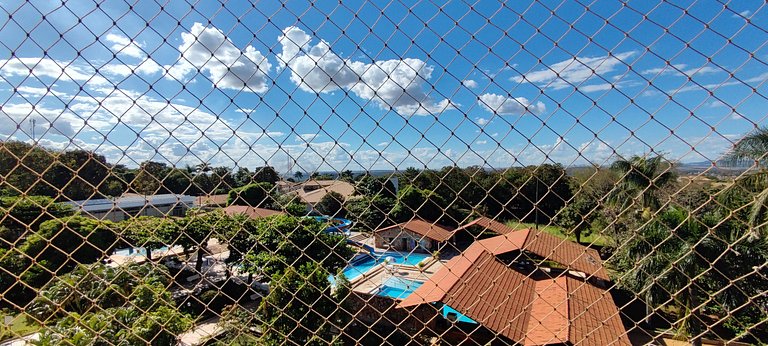 os 217 apartamentos, são equipados com TV, frigobar ou geladeira, telefone, ar condicionado, terraço com vista excepcional da cidade de Caldas Novas.