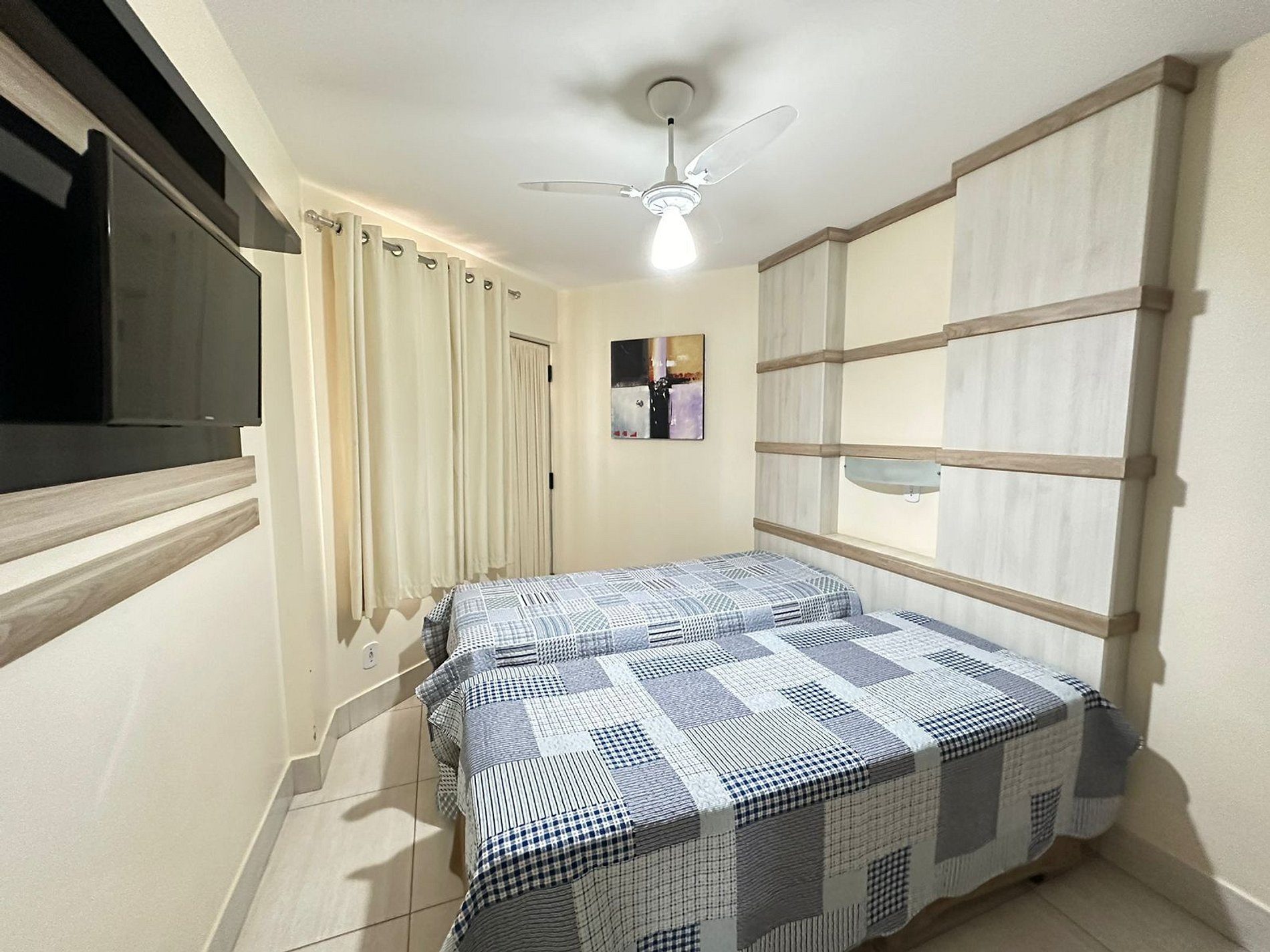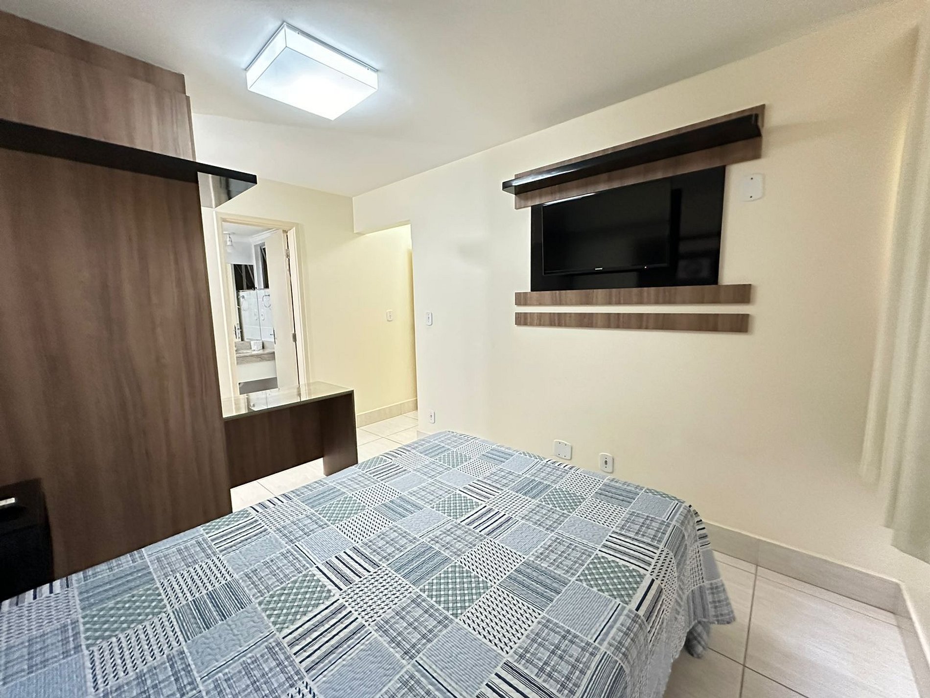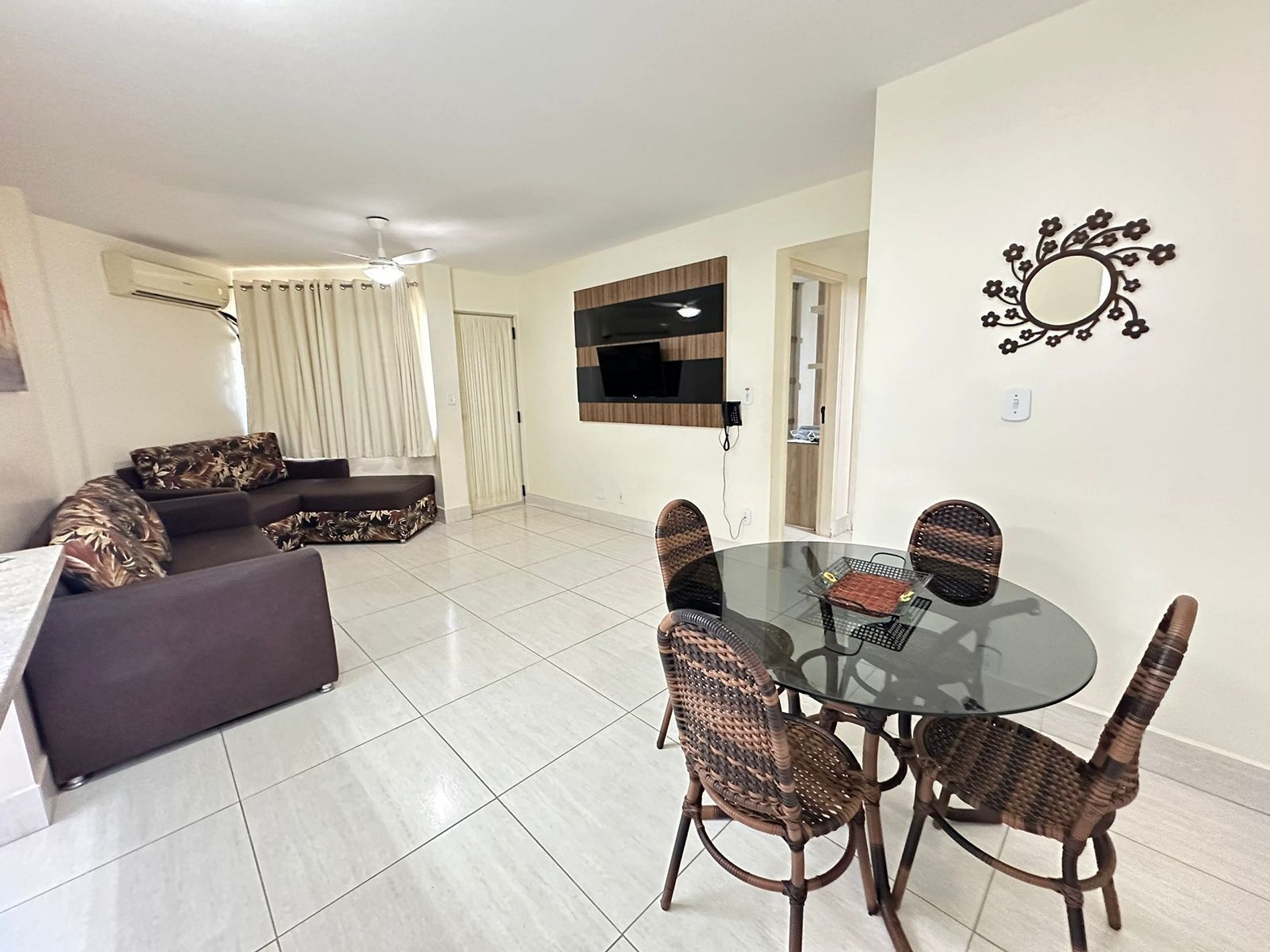 Apartamento de 2 quartos no condomínio Império Romano contendo suite de casal com ar condicionado, quarto de solteiro, banheiro social, sala com Tv, sofá cama de casal . Cozinha completa com geladeira, fogão e microondas.