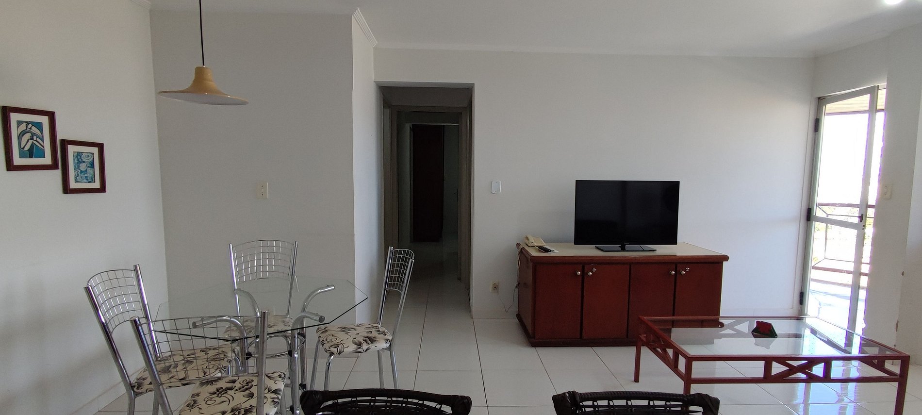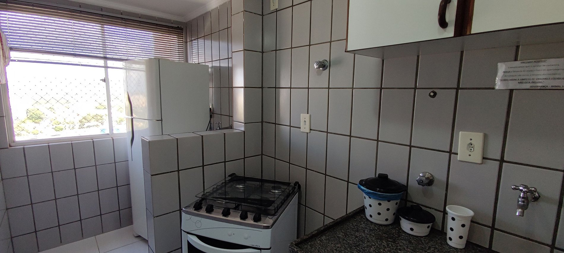 Um belo e amplo apartamento no condomínio Império Romano de 2 quartos sendo: 01 suite de casal com ar condicionado, quarto de solteiro com camas e auxiliar, banheiro social, sala com tv, sofá cama de casal, mesa e cadeiras, uma sacada. Cozinha completa com geladeira, microondas e fogão (possui utensílios básicos de cozinha).