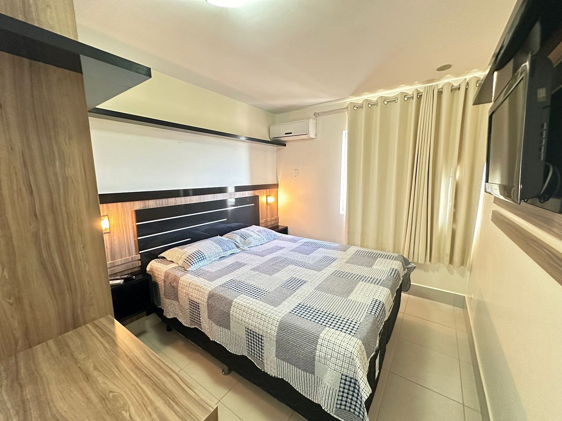 os 217 apartamentos, são equipados com TV, frigobar ou geladeira, telefone, ar condicionado, terraço com vista excepcional da cidade de Caldas Novas.