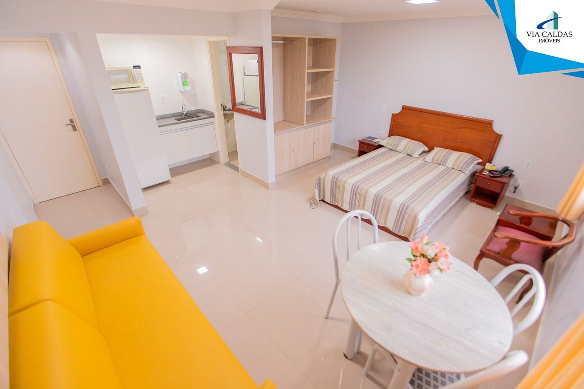 os 217 apartamentos, são equipados com TV, frigobar ou geladeira, telefone, ar condicionado, terraço com vista excepcional da cidade de Caldas Novas.