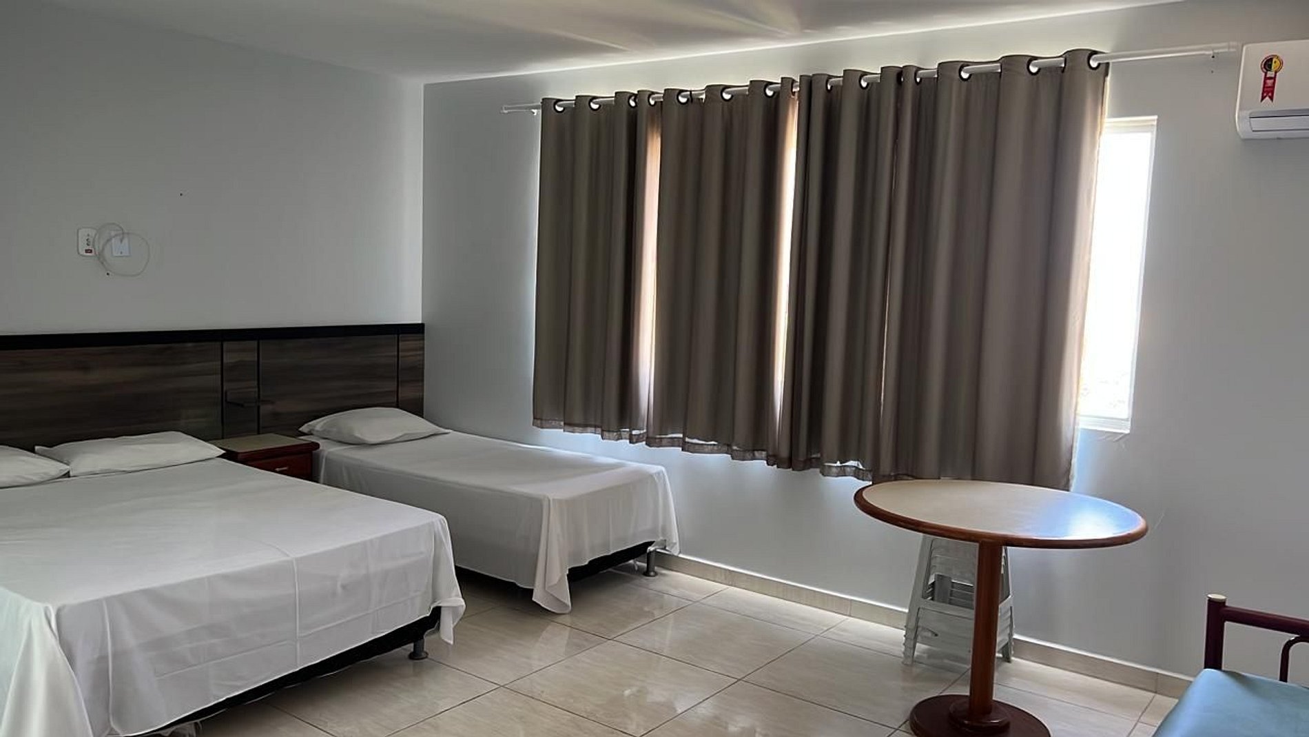 -suite com cama de casal com ar condicionado, cama de solteiro, sofá cama.