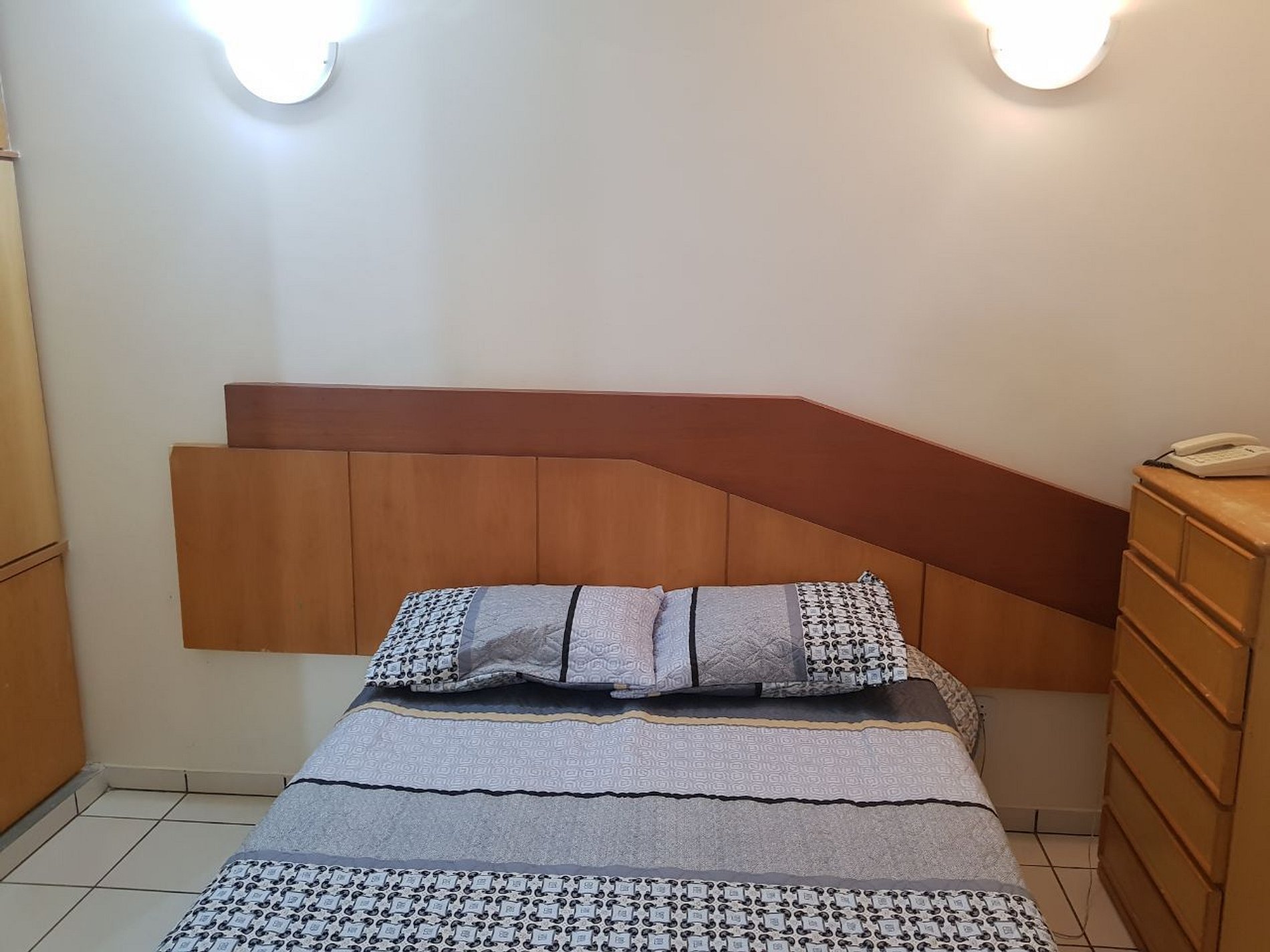 Apartamento no condomínio diRoma Internacional Resorts contendo 1 suíte de casal com ar condicionado, sala com sofá cama de casal, tv. Cozinha compacta com fogão, geladeira, microondas e utensílios básicos de cozinha.