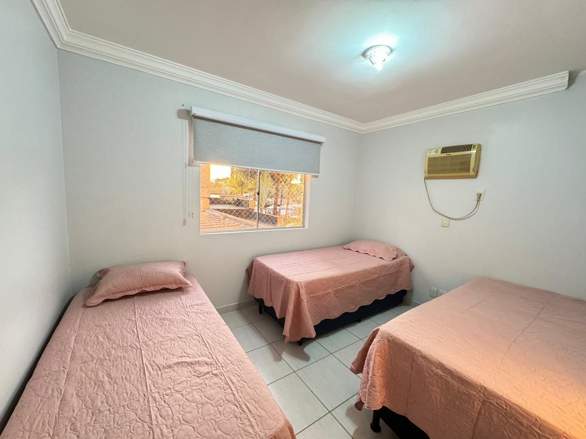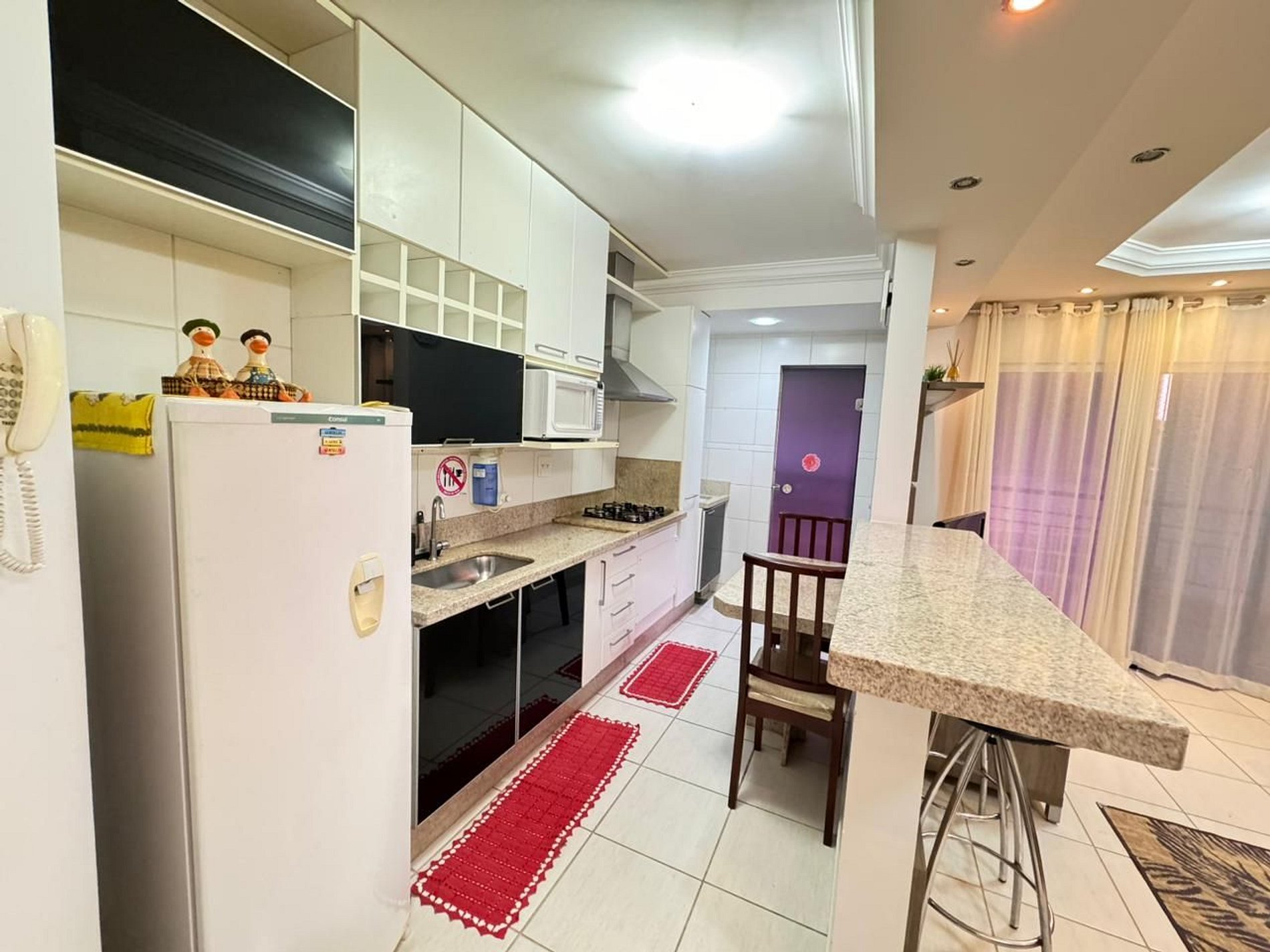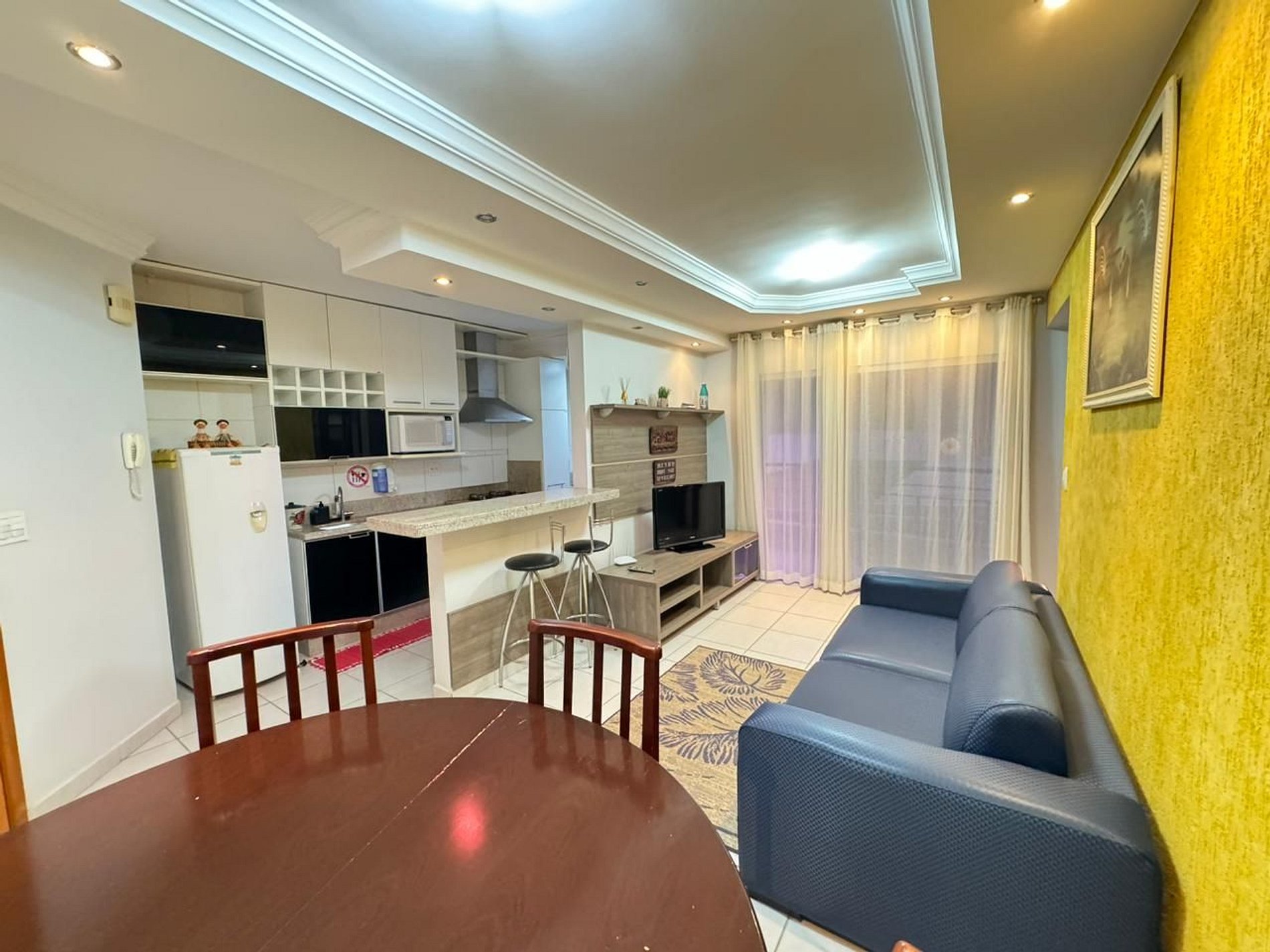 Apto com 1 suíte casal, 1 quarto solteiro com 3 camas box e 1 cama auxiliar, ar-condicionado nos quartos, sala com TV, cozinha completa (fogão, geladeira, micro-ondas e utensílios).