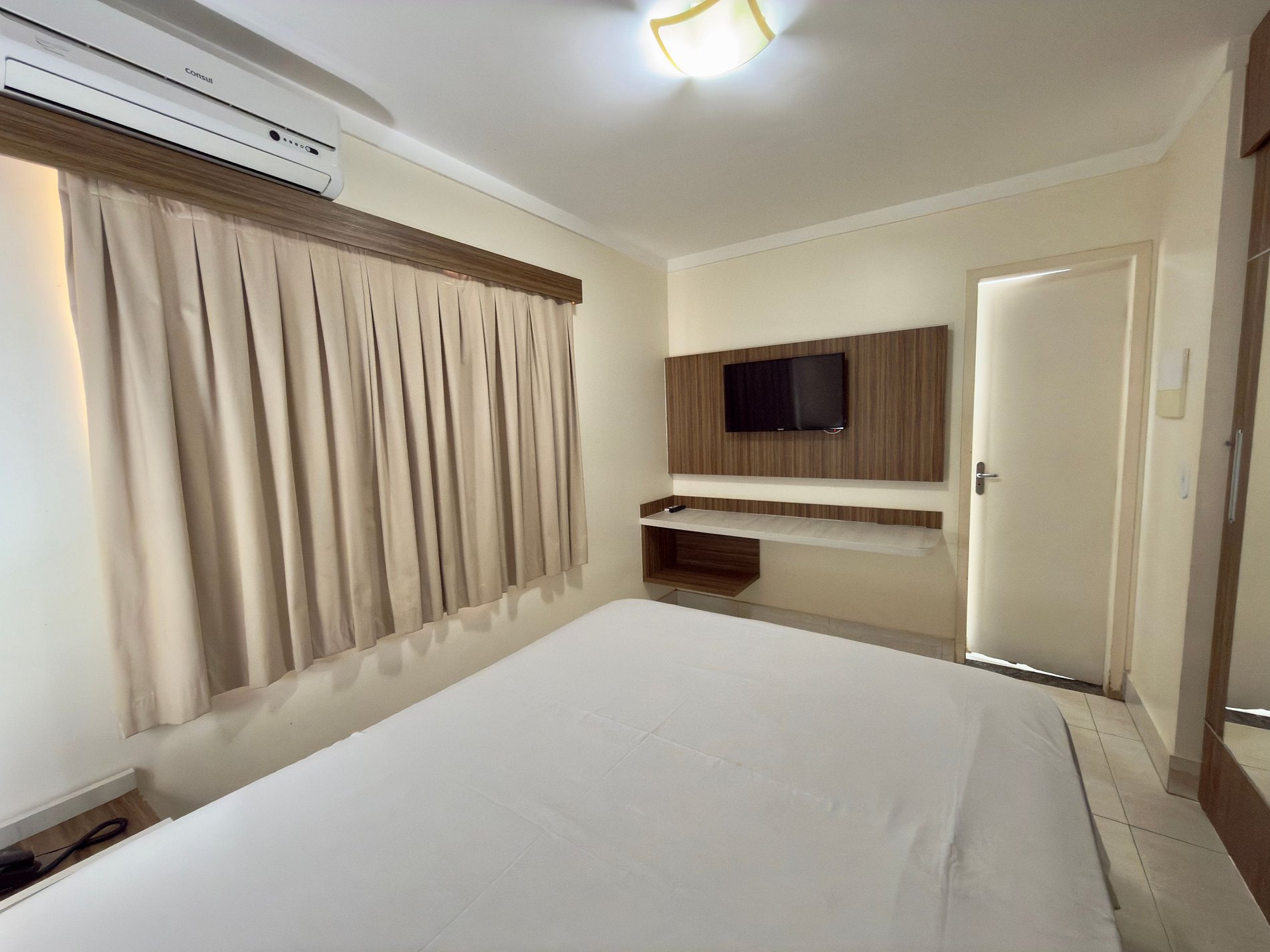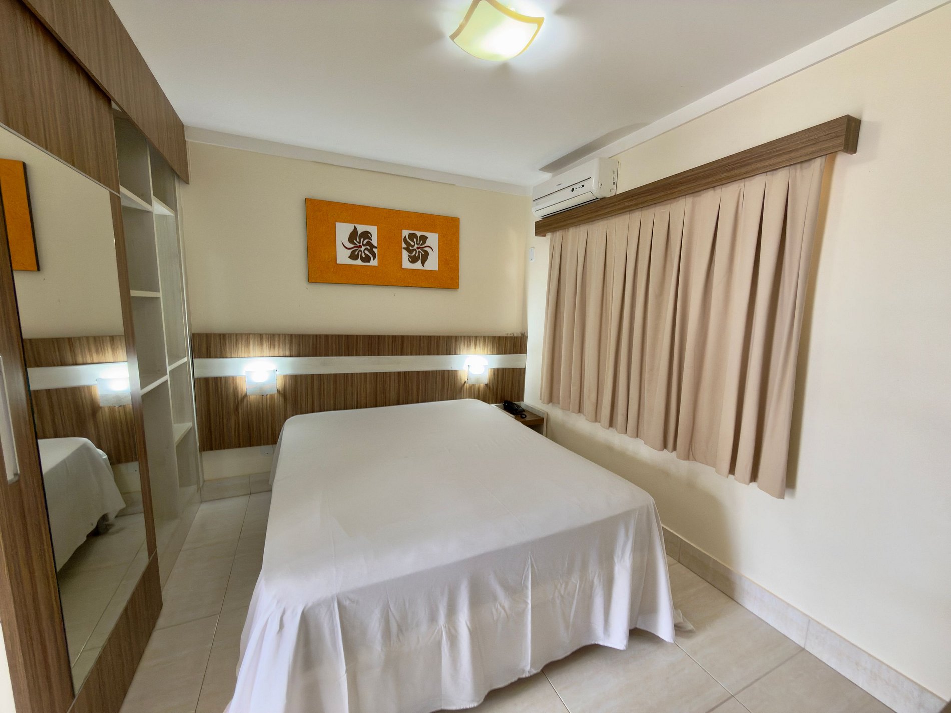 Flats contendo suíte de casal com TV e ar condicionado, colchão extra de solteiro.