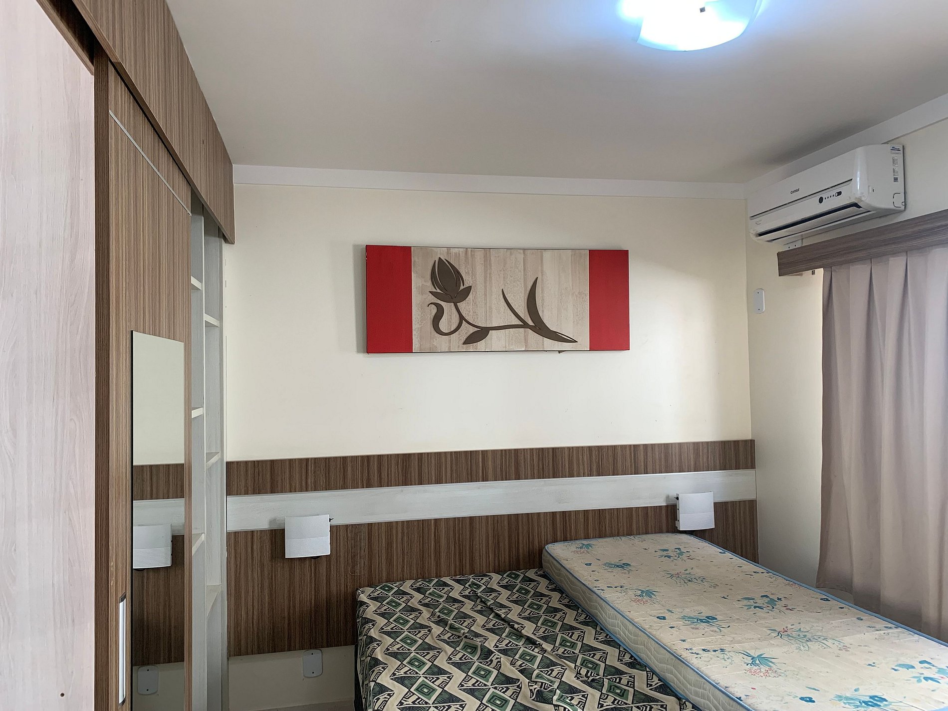 Flats contendo suíte de casal com TV e ar condicionado, colchão extra de solteiro.