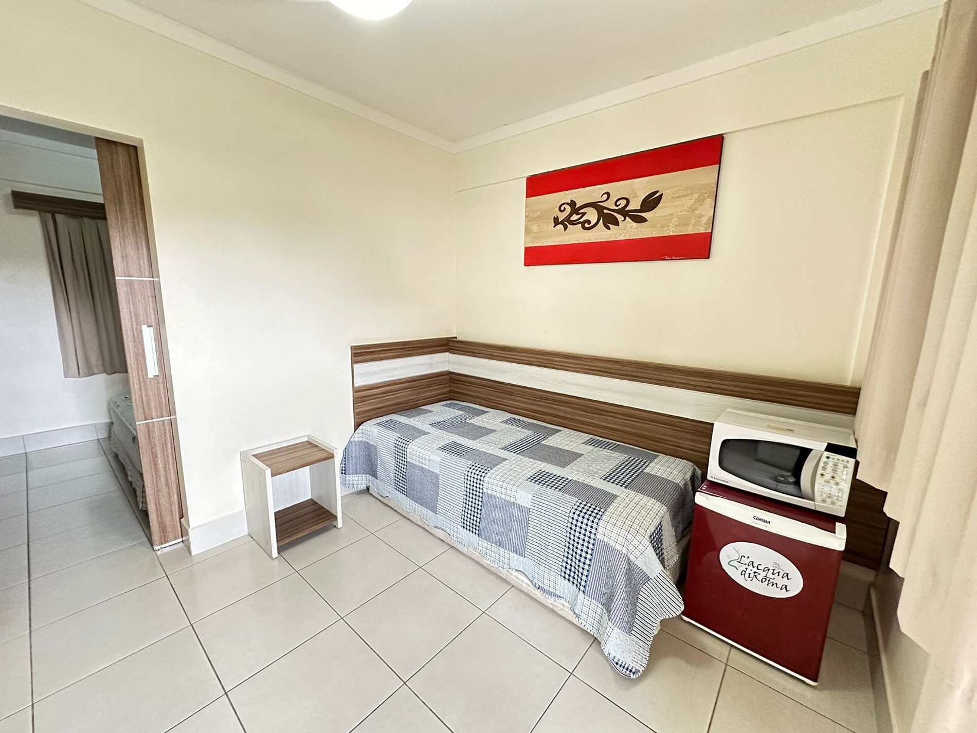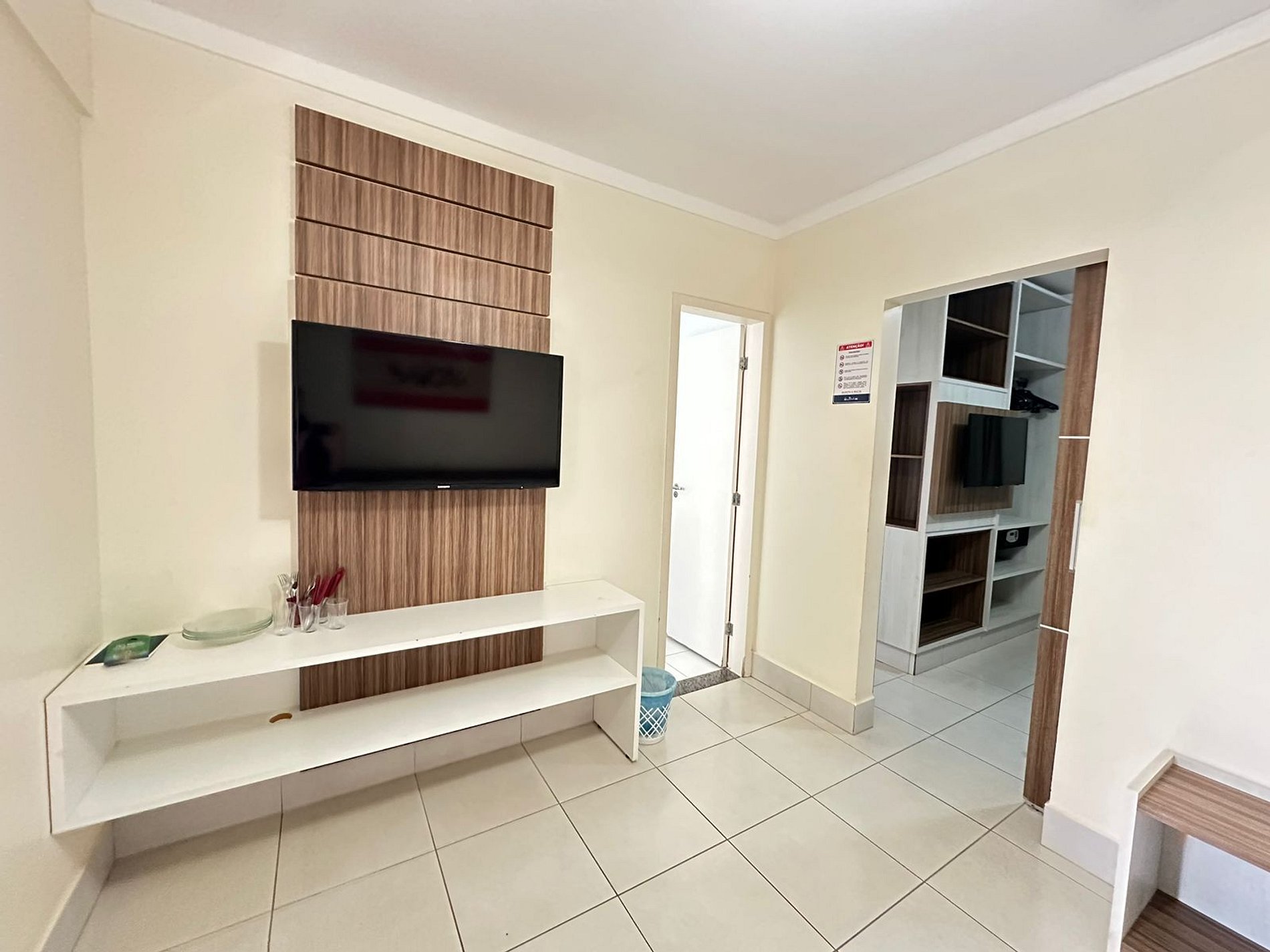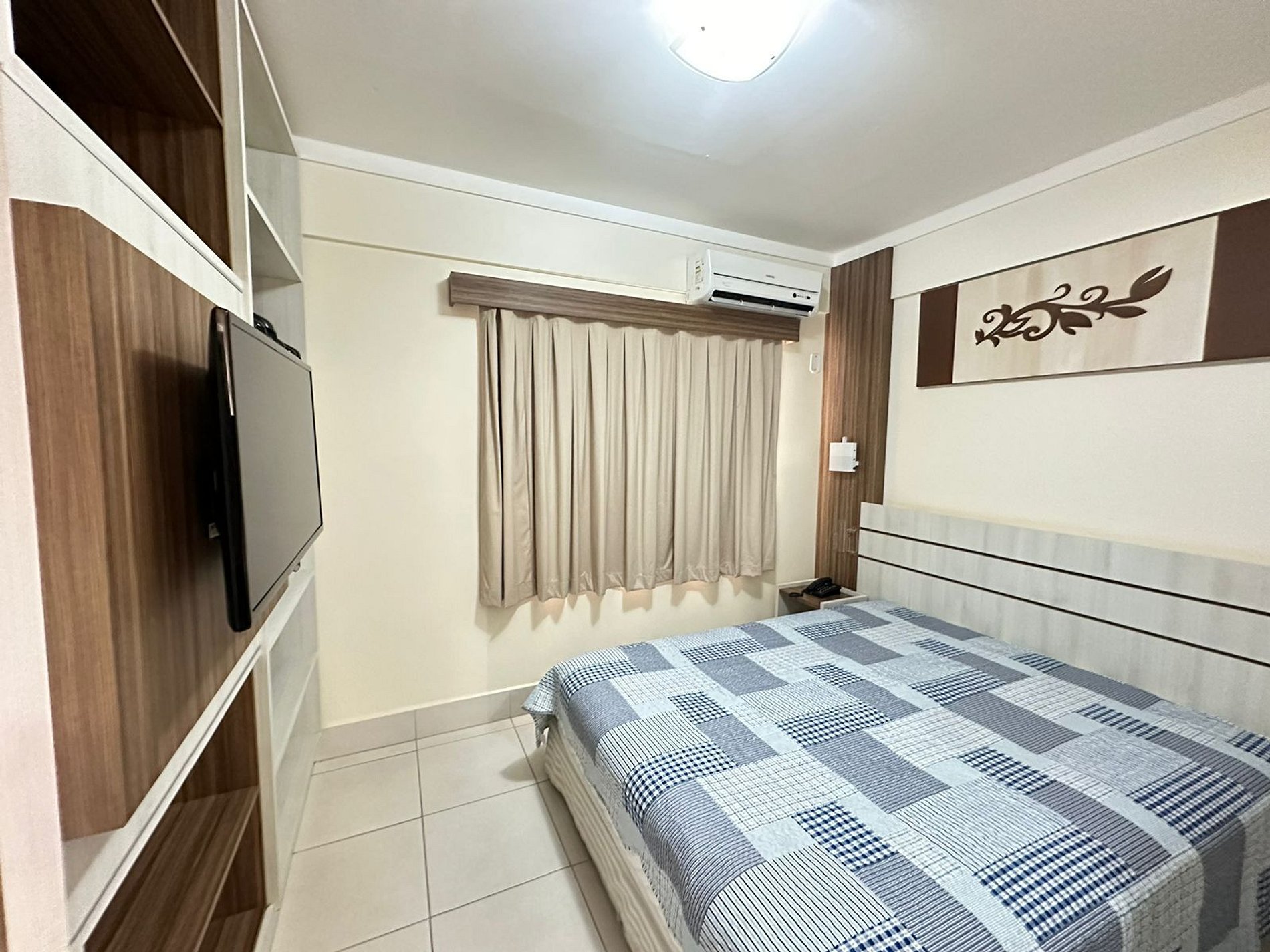 Flats contendo suíte de casal com TV e ar condicionado. Sala com sofá cama de casal, TV. Acomoda até 5 pessoas independente da idade.