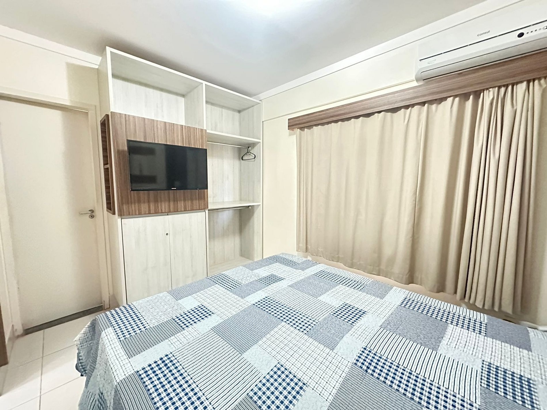 Flats contendo suíte de casal com TV e ar condicionado. Sala com sofá cama de casal, TV. Acomoda até 5 pessoas independente da idade.