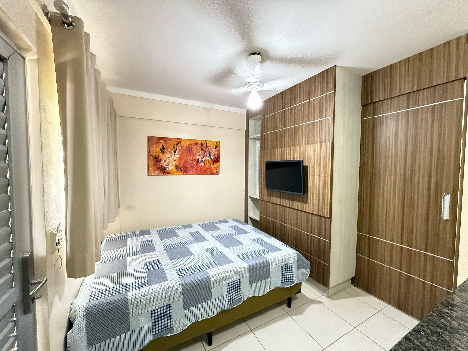 Flats contendo suíte de casal com TV e ar condicionado. Sala com sofá cama de casal, TV. Acomoda até 5 pessoas independente da idade.