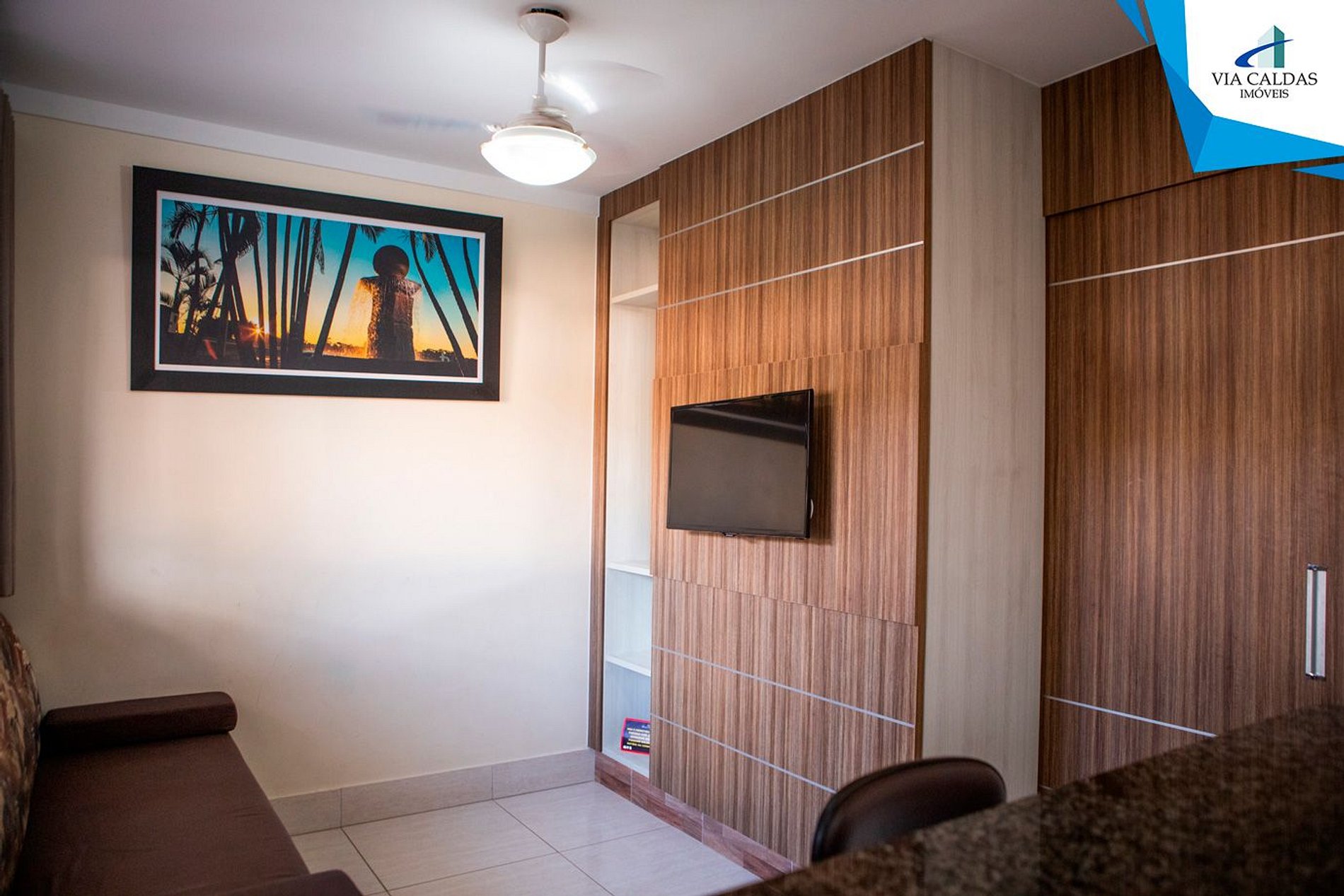 Apartamento contendo suite de casal com TV e ar condicionado, sala