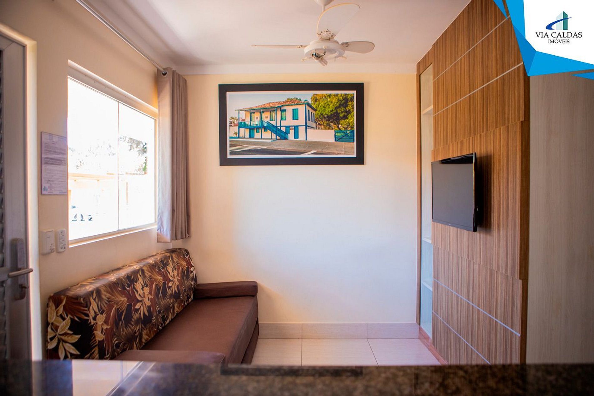 Apartamento contendo suite de casal com TV e ar condicionado, sala