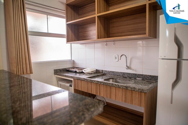 Apartamento contendo suite de casal com TV e ar condicionado, sala