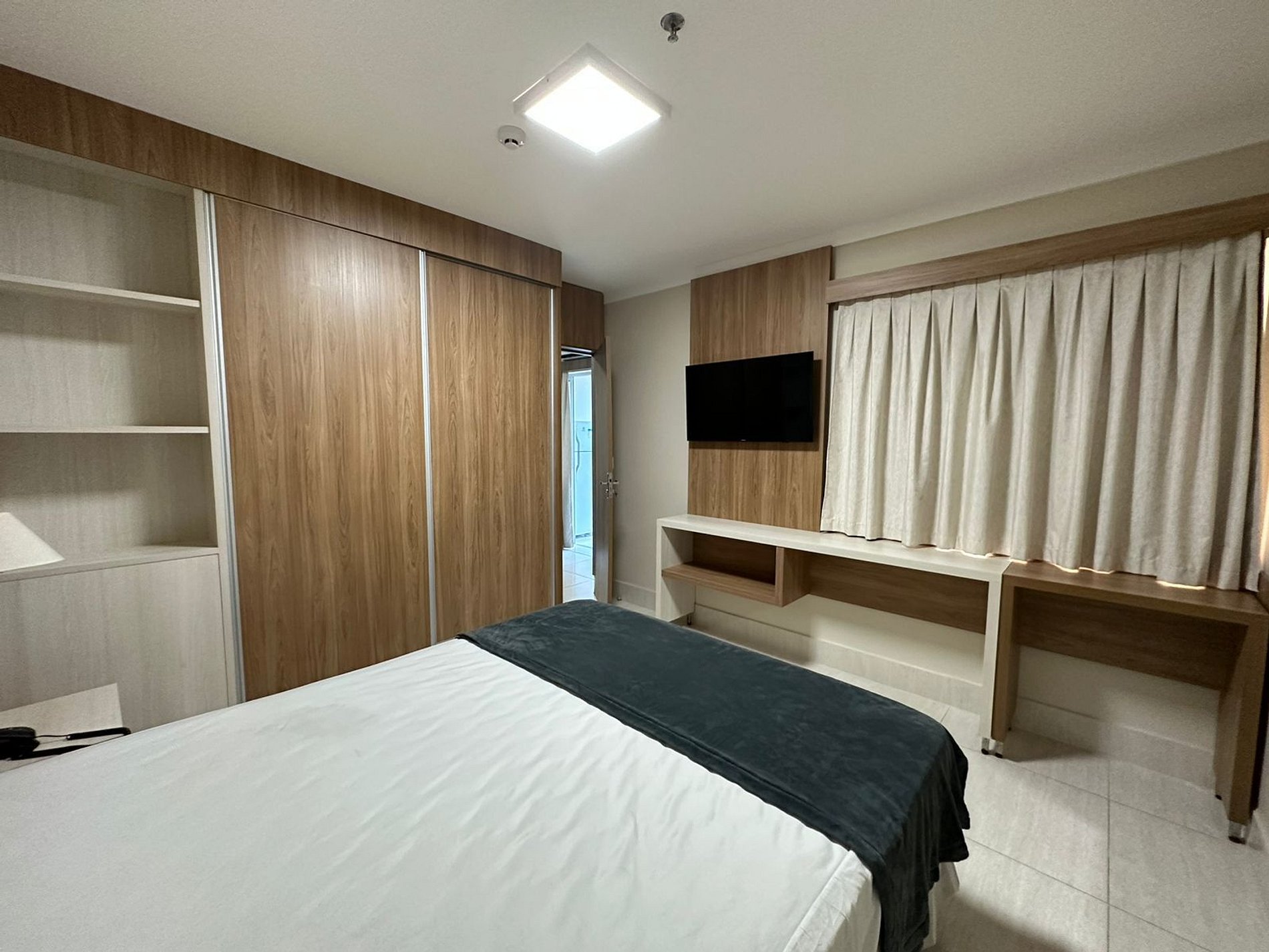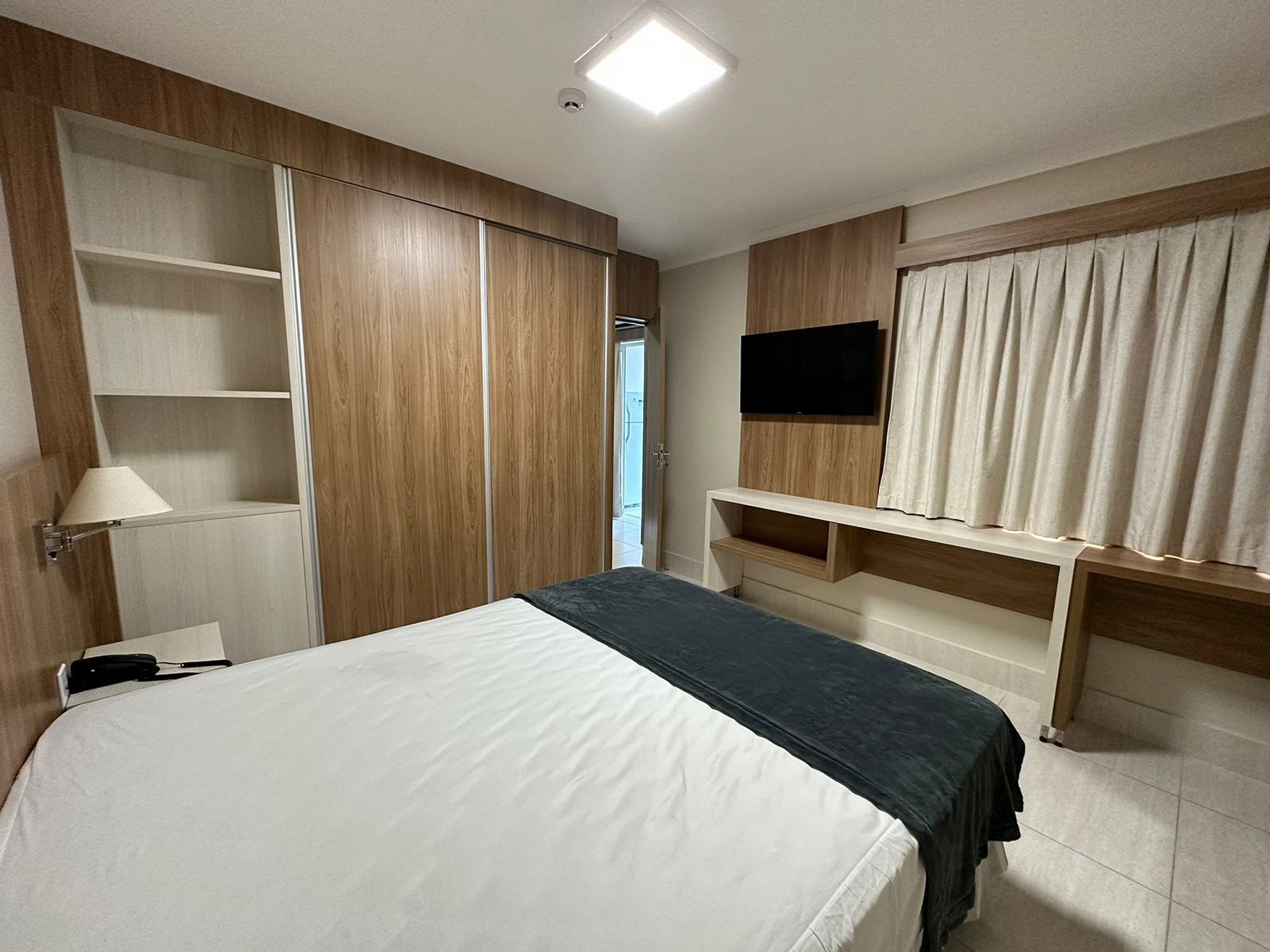 Um aconchegante apartamento contendo, quarto de casal com TV e Ar condicionado. Sala com ar-condicionado, TV, frigobar, sofá cama de casal. Varanda.