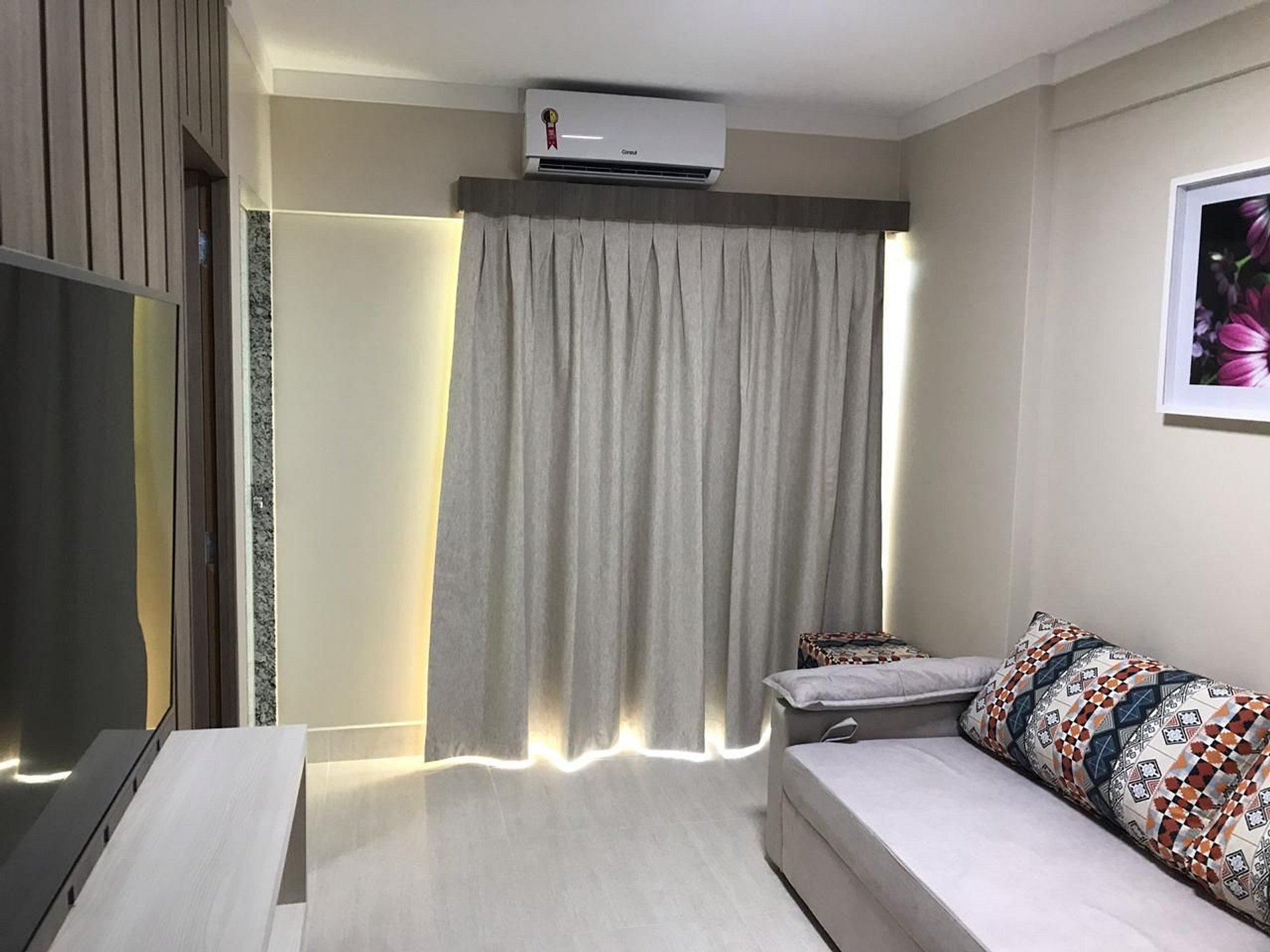 Apartamentos aconchegantes de 1 quartos, sala e varanda gourmet, comportam até 5 pessoas.