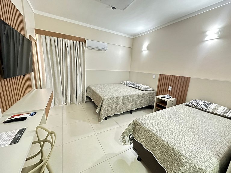 Quartos espaçosos para famílias: Oferecemos quartos espaçosos e confortáveis, perfeitos para acomodar toda a sua família. Aqui, cada membro terá seu próprio espaço para descansar e relaxar.