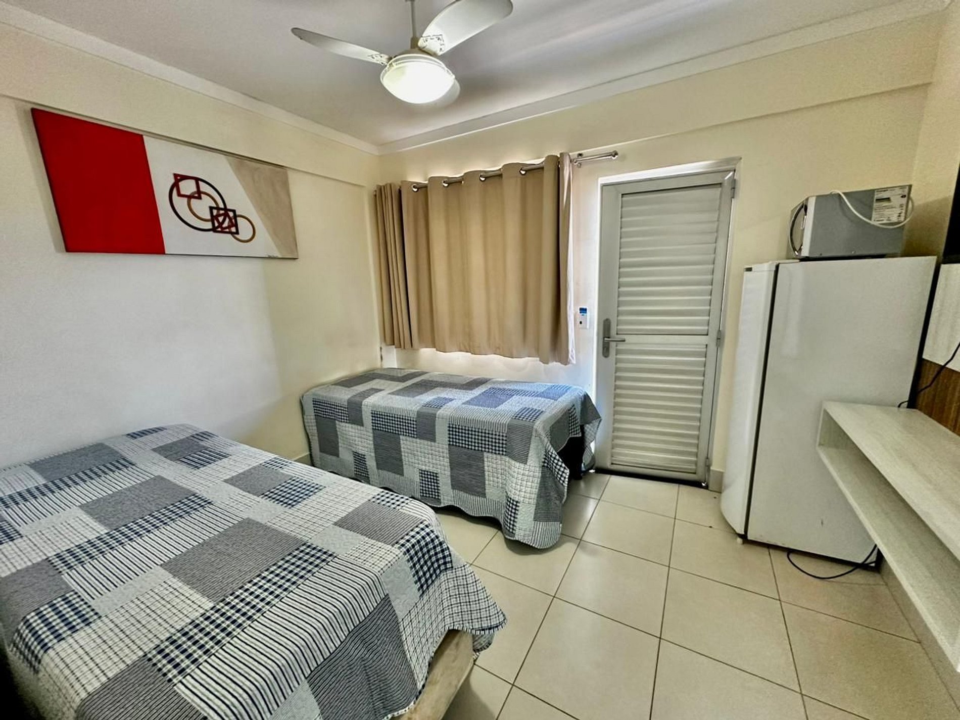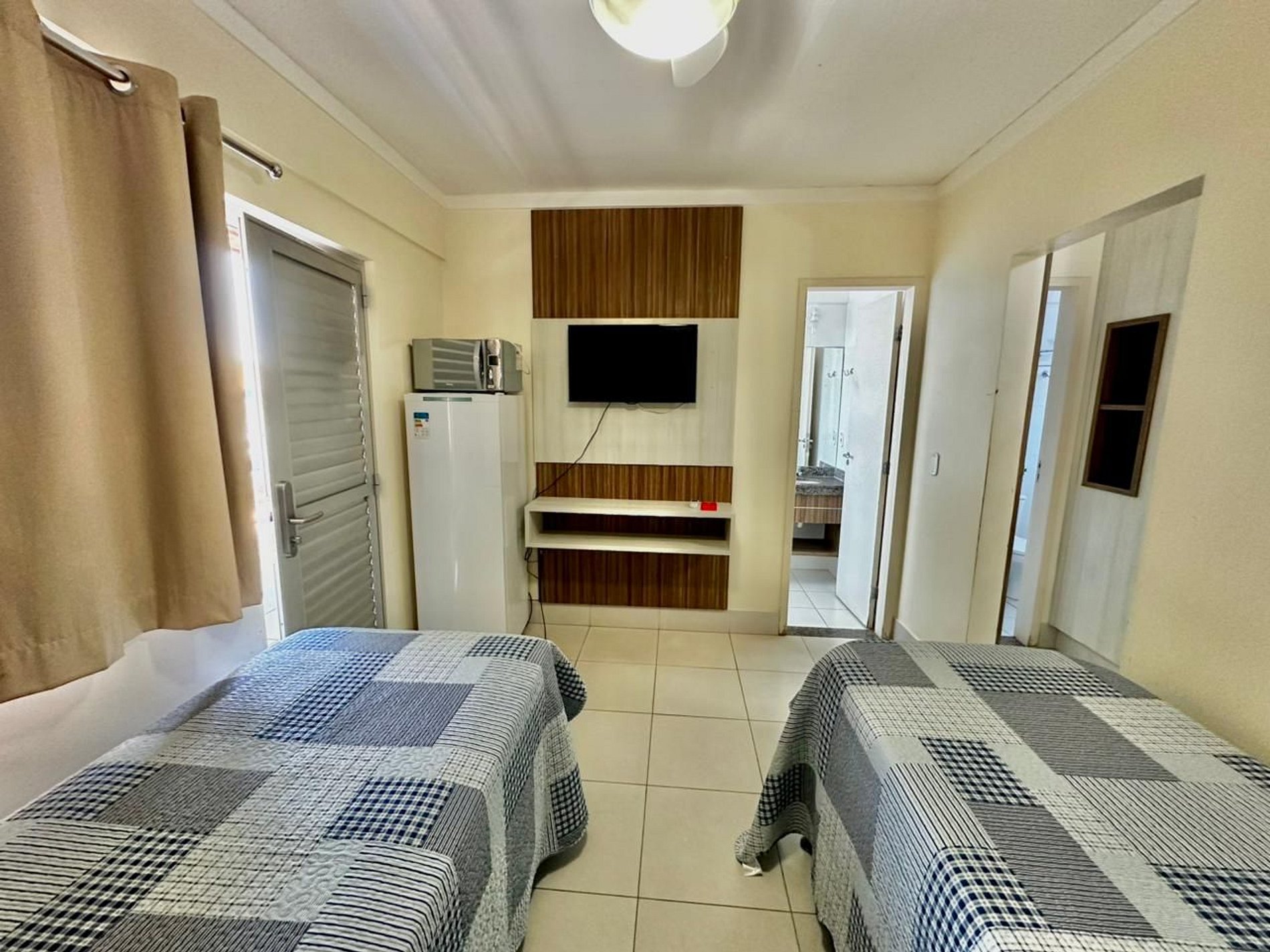 - Geladeira e micro-ondas, ideais para pequenas refeições e bebidas (não possui cozinha completa);
