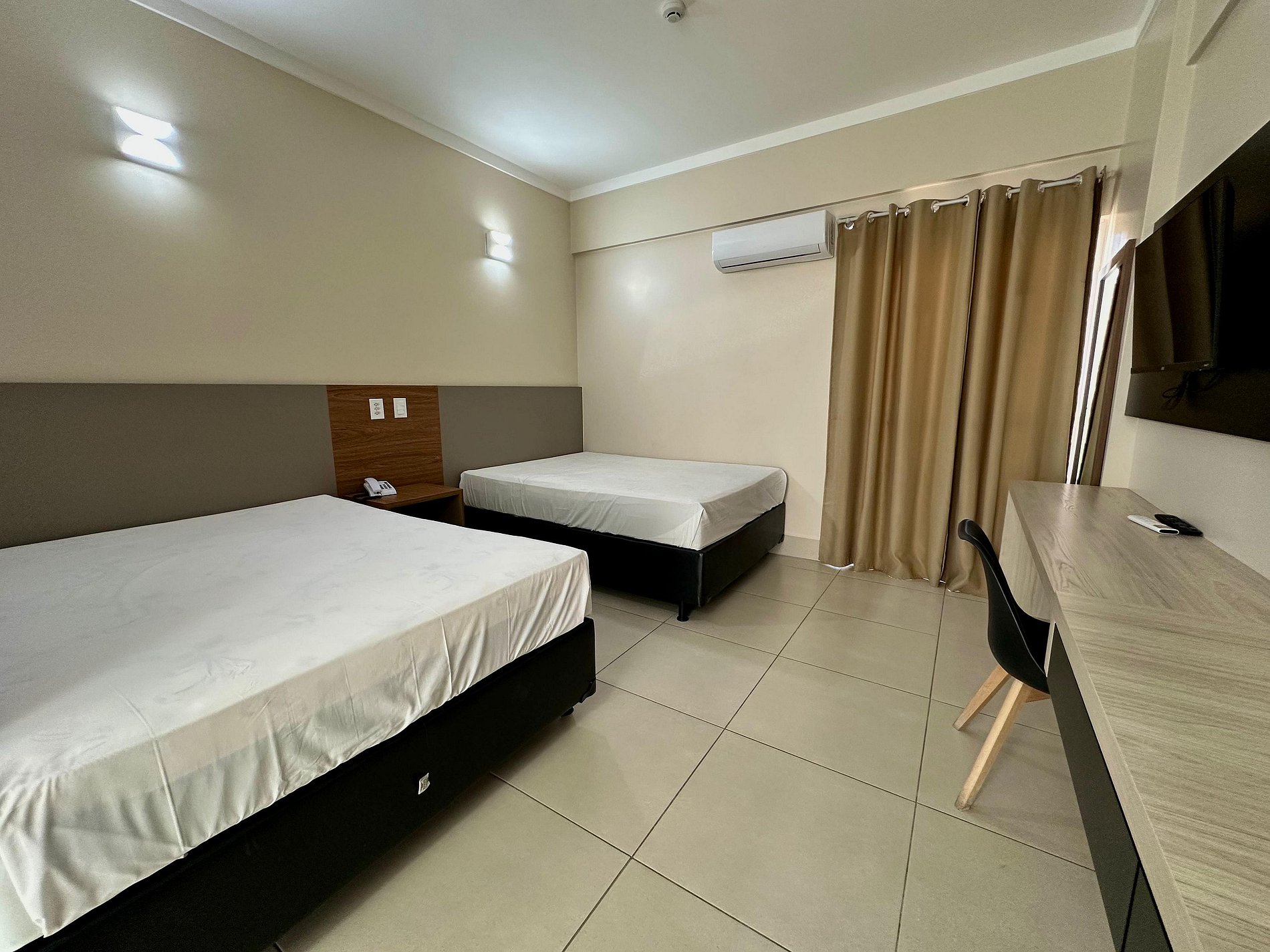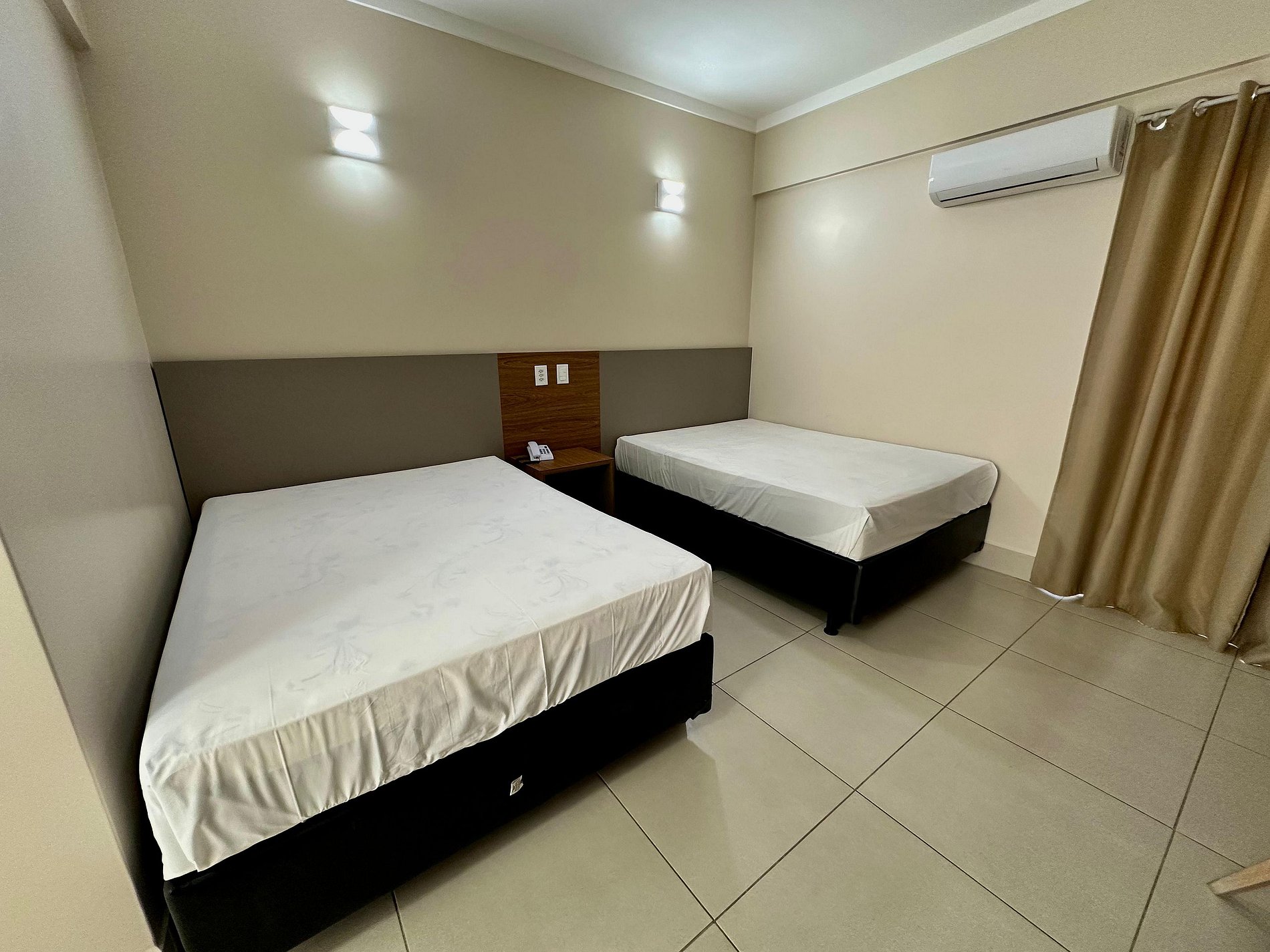 Suíte com 2 camas de casal, ar condicionado, TV a cabo e frigobar. Capacidade de acomodação para até 4 pessoas independente da idade.