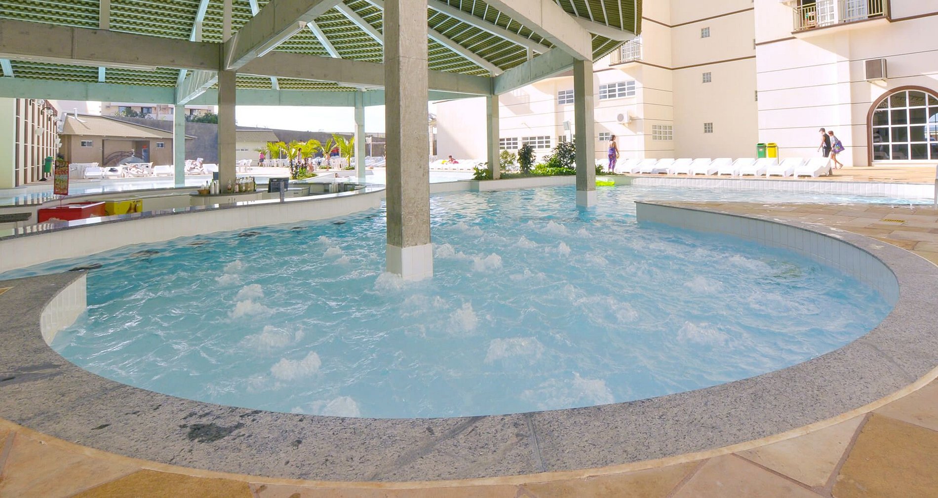 Além disso, desfrute de comodidades como sauna, academia, salão de jogos e estacionamento. A conexão Wi-Fi gratuita mantém você conectado enquanto relaxa nas piscinas ou aproveita o bar molhado para desfrutar de drinks refrescantes e petiscos deliciosos.